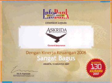 Pada 2007, PT Asuransi Bangun ASKRIDA mendapatkan penghargaan sebagai Asuransi Umum terbaik yang memiliki aset di atas 100 Miliar - 250 Miliar Rupiah, yang diberikan pada 5 Juli 2007, oleh Media Asuransi.
