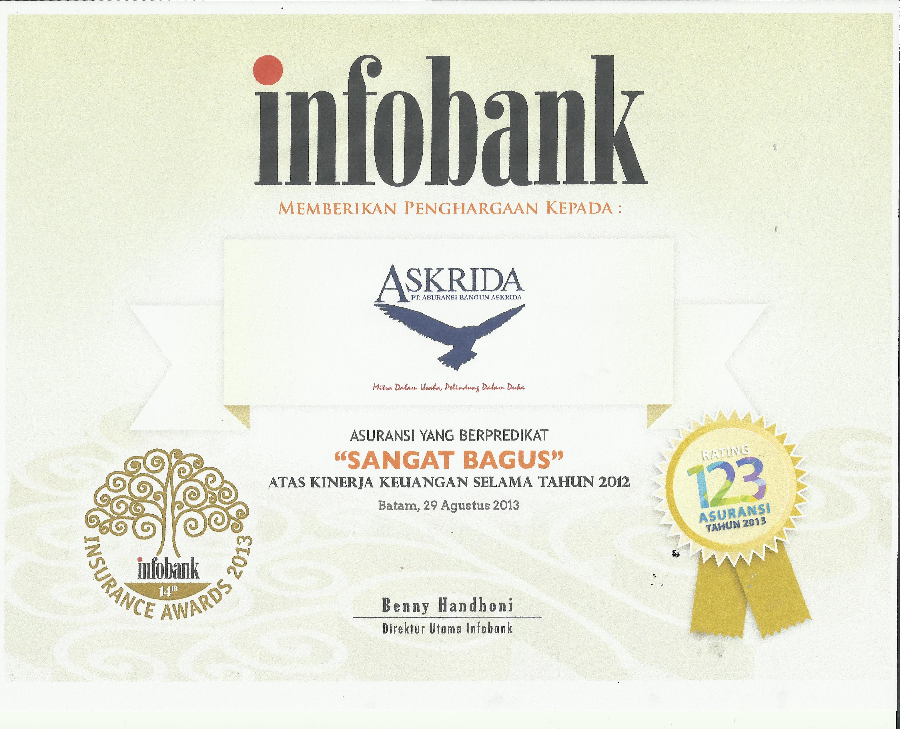 Pada tahun 2013, PT Asuransi Bangun Askrida mendapatkan penghargaan sebagai Asuransi Umum yang sangat bagus atas kinerja keuangan di tahun 2012, pada tanggal 29 Agustus 2013, dari majalah Infobank.